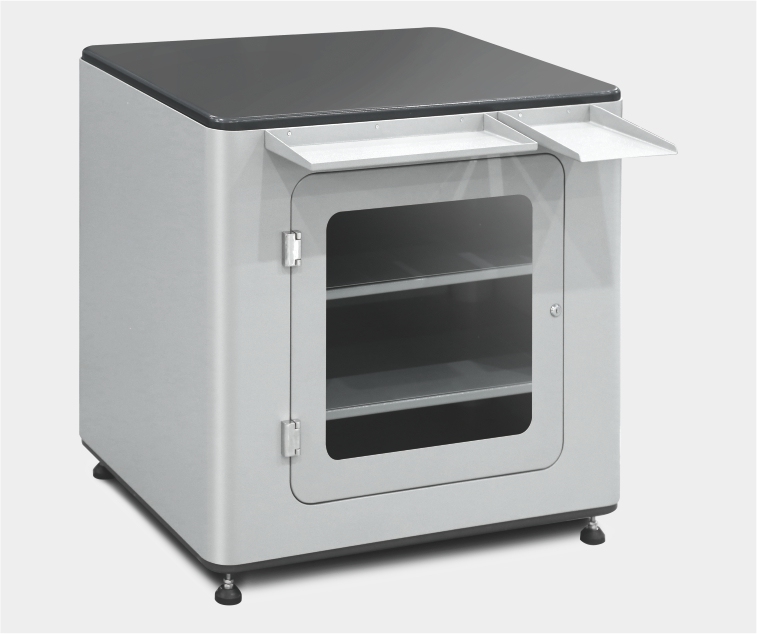 A multiple section tools holder is embedded at the side of the machine for organized tool storage.
