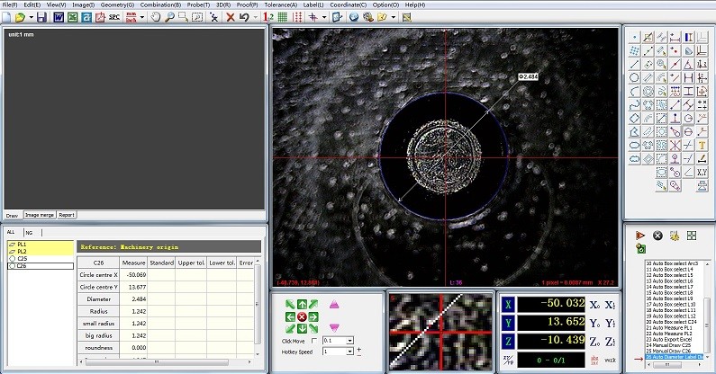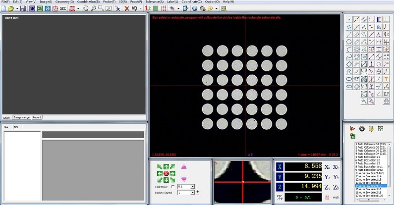 অটো ফোকাসিং, স্বয়ংক্রিয় পরিমাপ, ম্যাট্রিক্স পরিমাপ, এবং DXF ফাইল আমদানি অংশ চিত্র বা পরিমাপ করা গ্রাফিক্সের সাথে তুলনা করার জন্য।